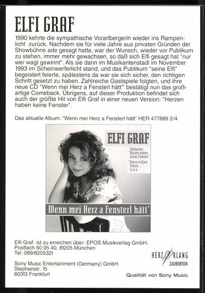 AK Musikerin Elfi Graf lächelnd im Porträt, Autograph