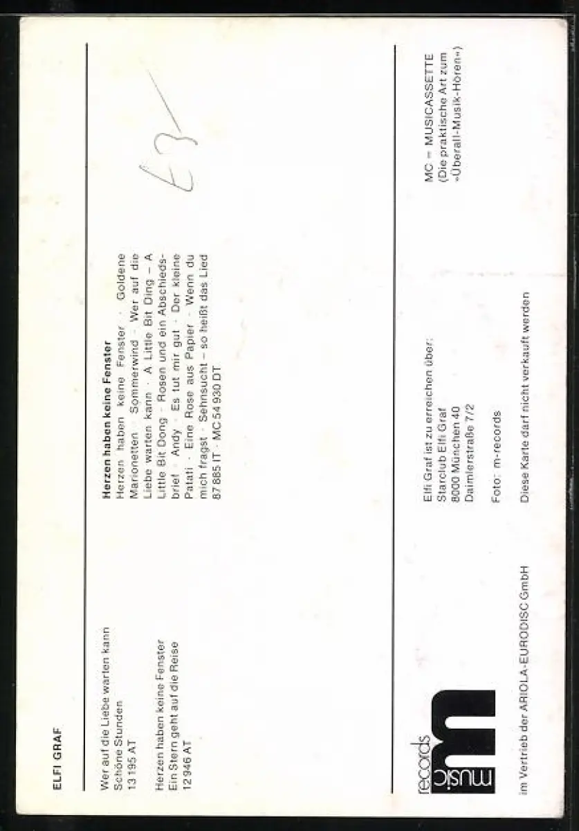 AK Musikerin Elfi Graf mit langen Haaren, Autograph