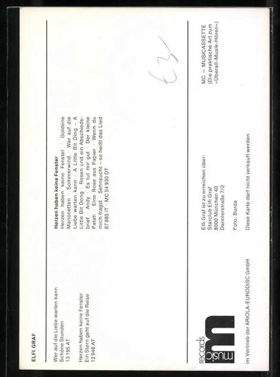 AK Musikerin Elfi Graf mit langen Haaren, Autograph