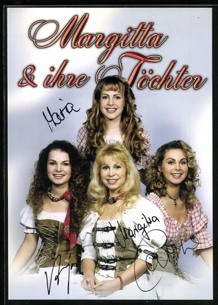 AK Musikerin Margitta und ihre Töchter in Trachten