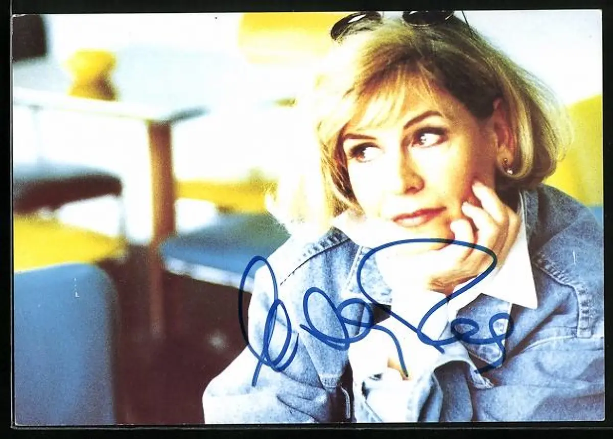 AK Musikerin Mary Roos in Jeansjacke mit Sonnenbrille, Autograph