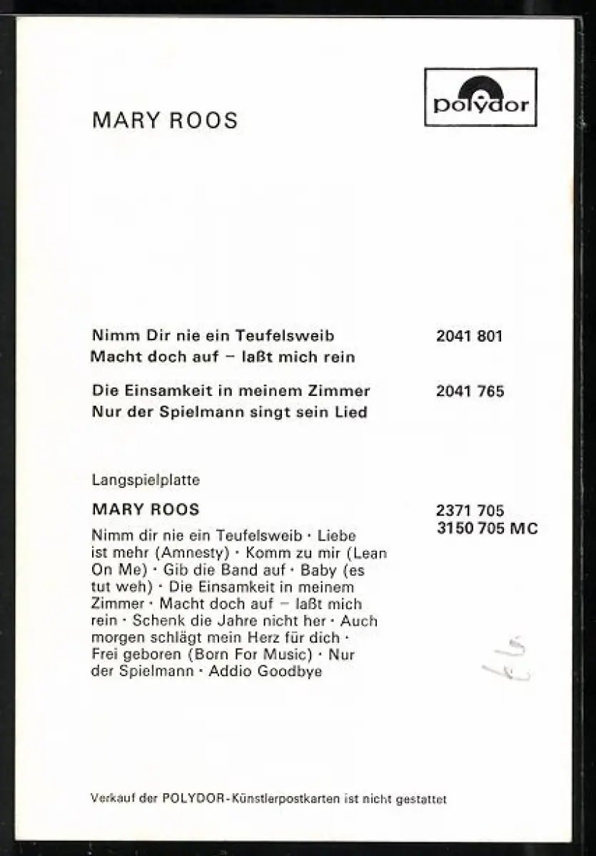 AK Musikerin Mary Roos in gestreifter Bluse, Autograph