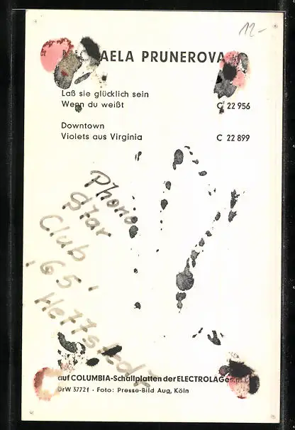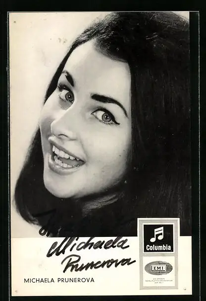 AK Musikerin Michaela Prunerova mit breitem Lachen, Autograph