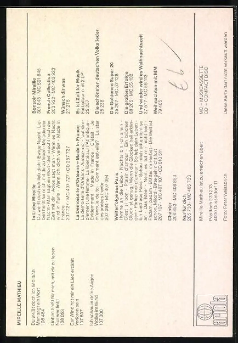 AK Musikerin Mireille Mathieu in rotem Kleid, Autograph