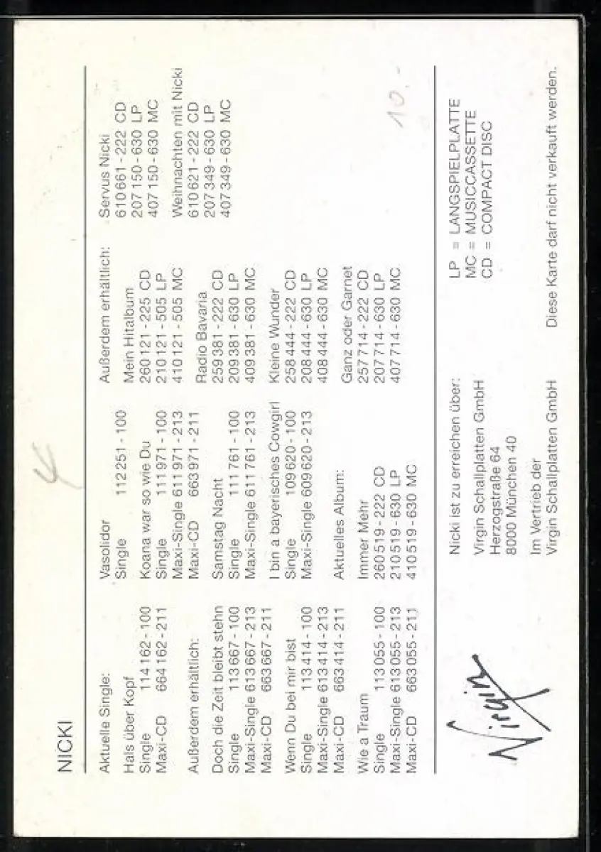 AK Musikerin Nicki im Porträt, Autograph