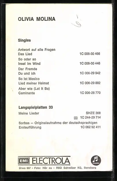 AK Musikerin Olivia Molina mit fragendem Blick, Autograph