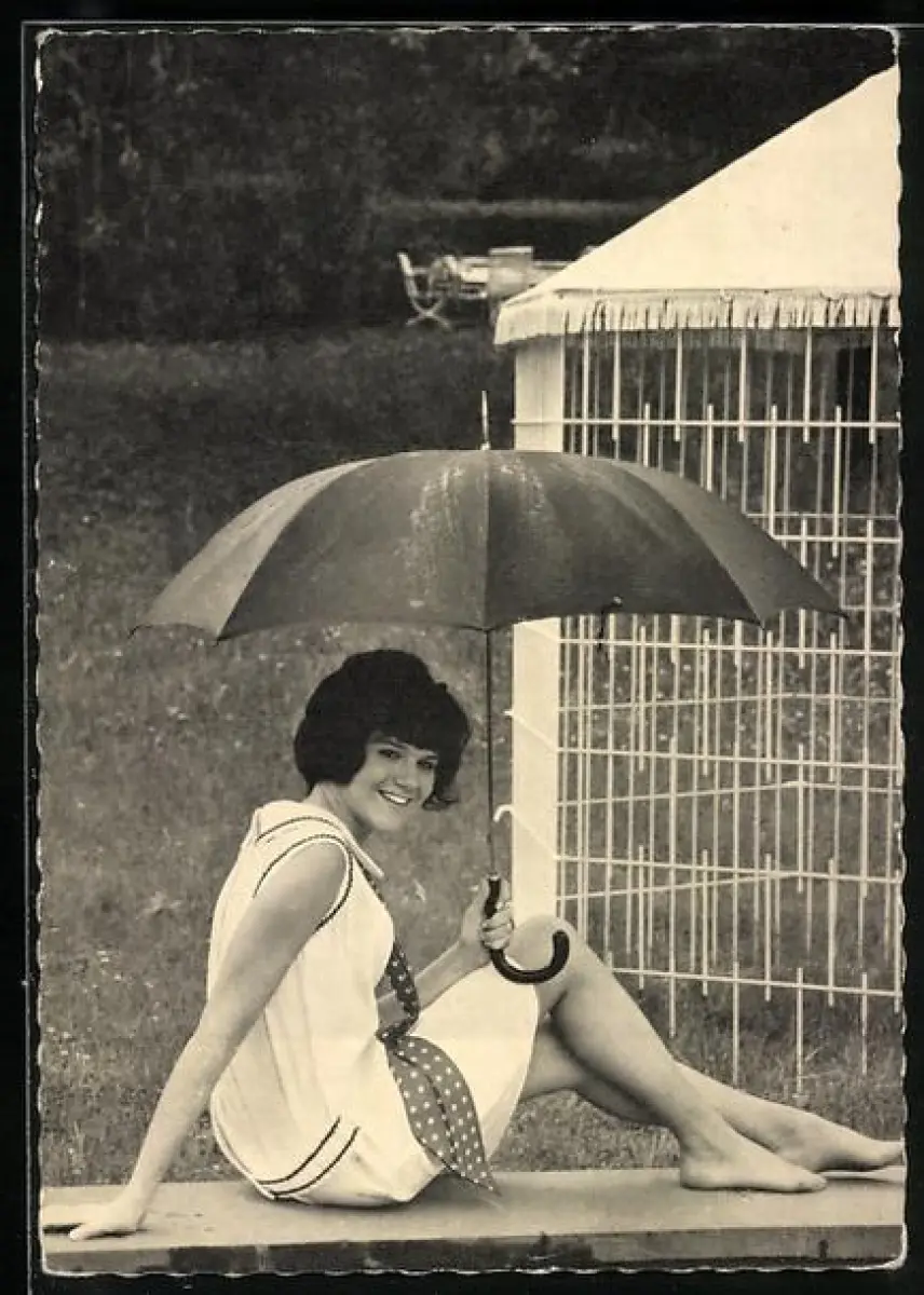 AK Musikerin Peggy March in Sommerkleid mit Regenschirm