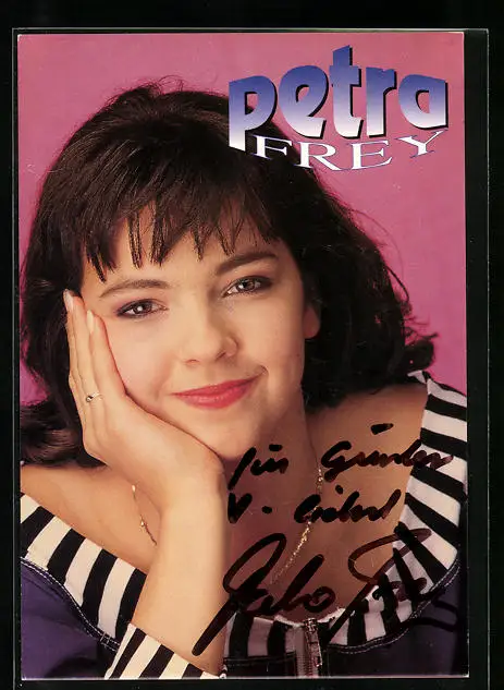AK Musikerin Petra Frey im Porträt, original Autograph