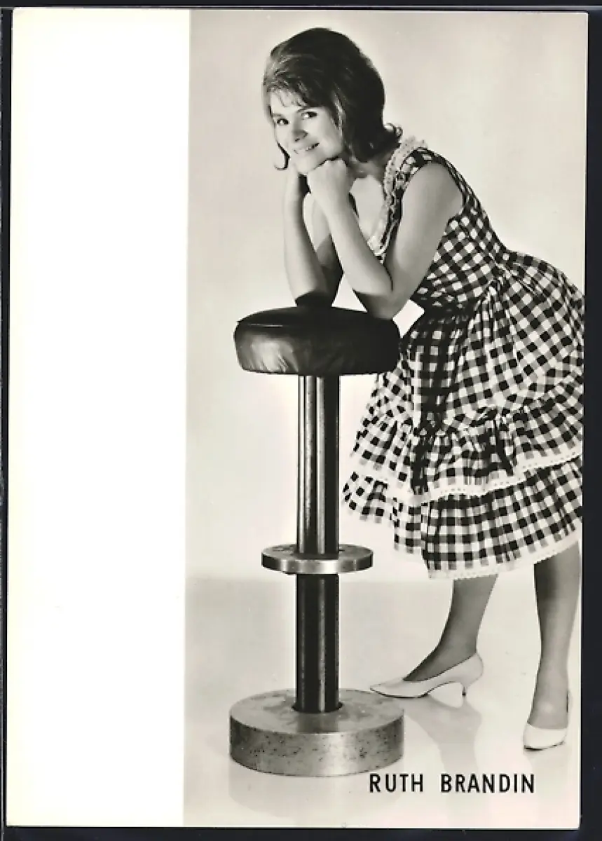 AK Musikerin Ruth Brandin stützt sich lässig auf einen Barhocker