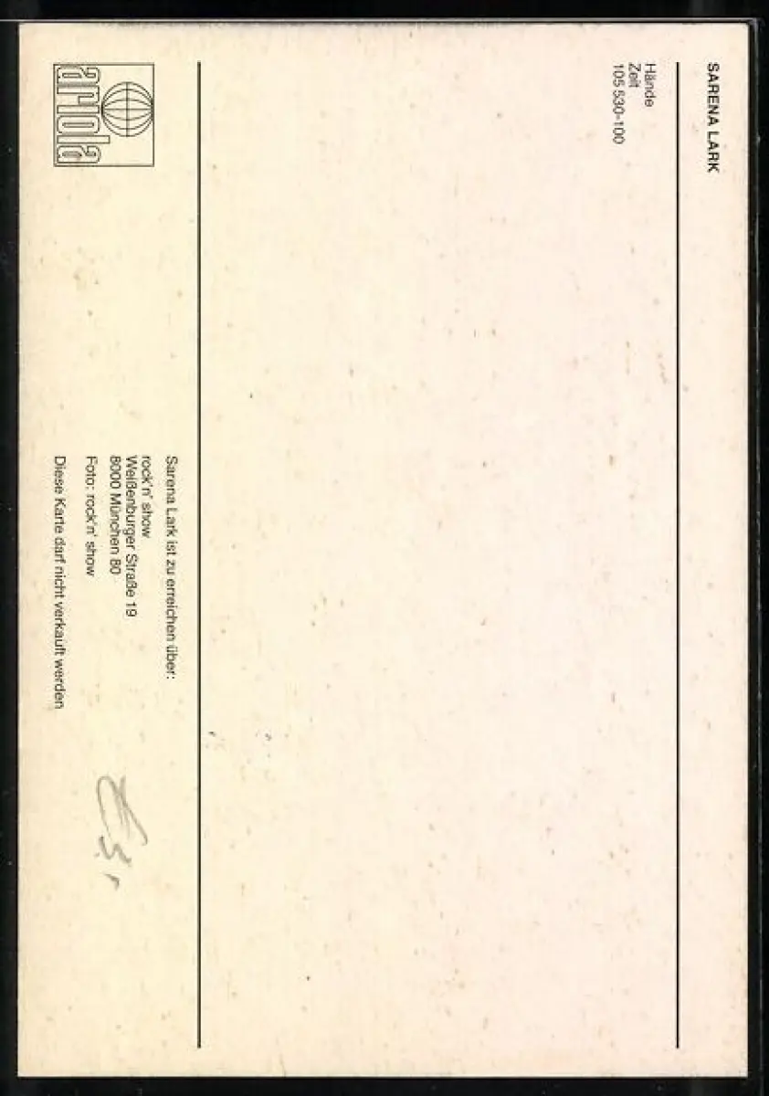 AK Musikerin Sarena Lark im Pullover, Autograph