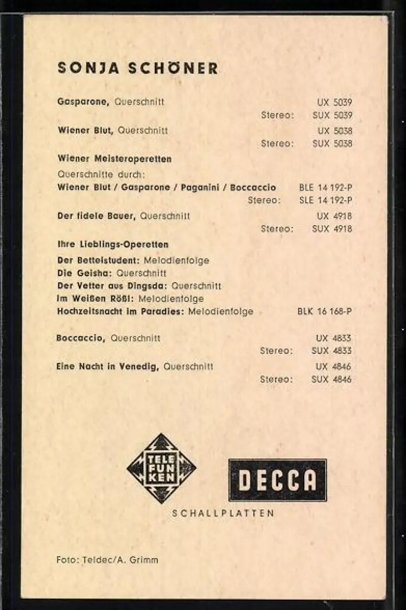 AK Musikerin Sonja Schöner mit Perlenkette, Autograph