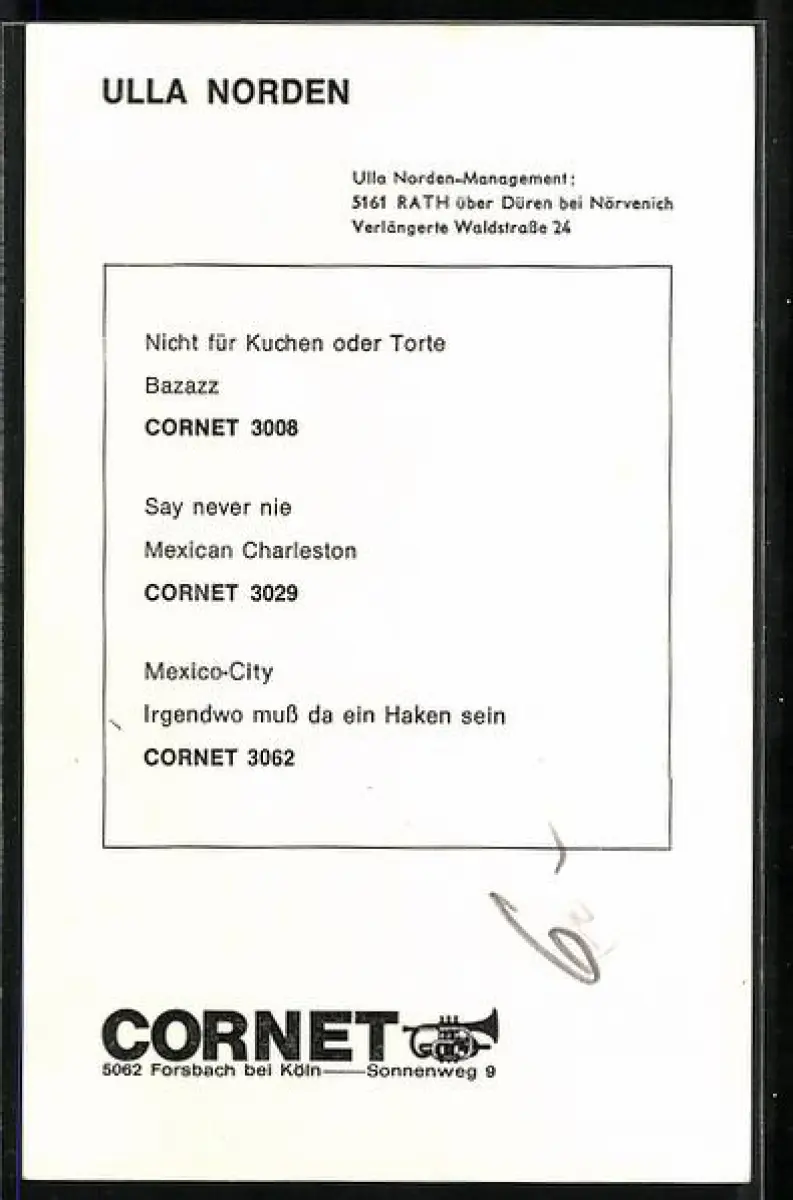 AK Musikerin Ulla Norden mit geflochtenem Zopf, Autograph