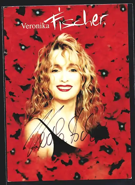 AK Musikerin Veronika Fischer inmitten von Blumen, original Autograph
