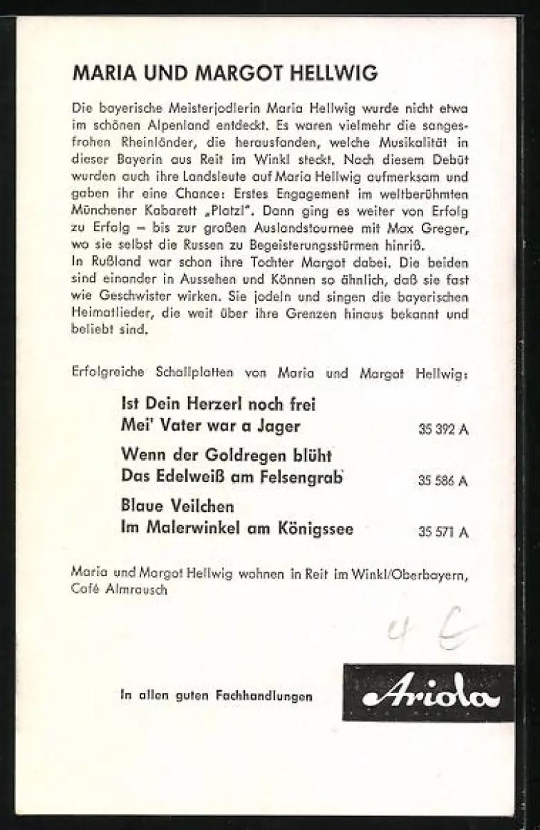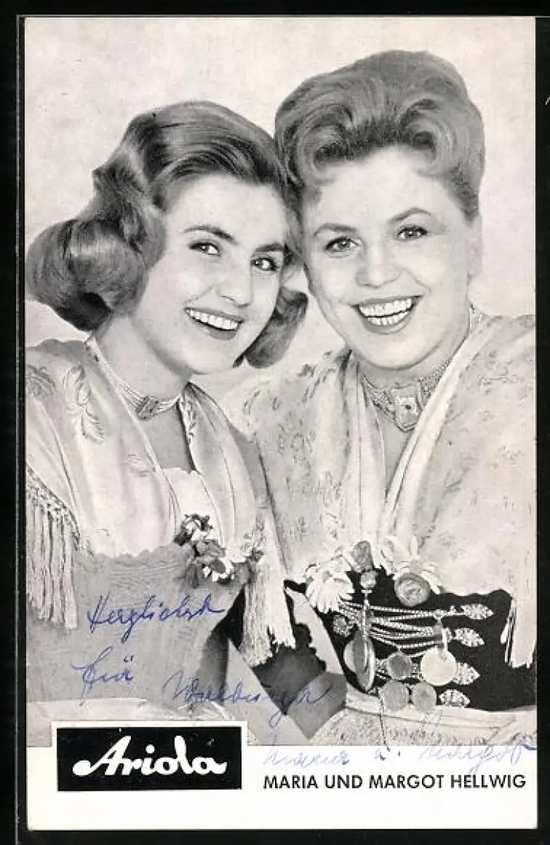 AK Musikerinnen Maria und Margot Hellwig, Lächelnd in die Kamera blickend