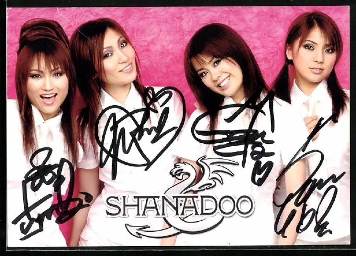 AK Musikerinnen der Band shanadoo in weissen Hemden, Autogramme
