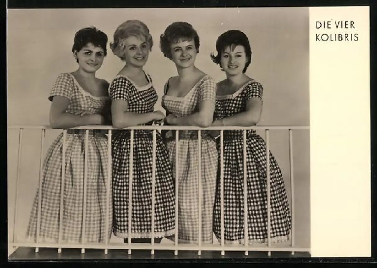 AK Musikerinnen der Gruppe Die vier Kolibris in karierten Kleidern