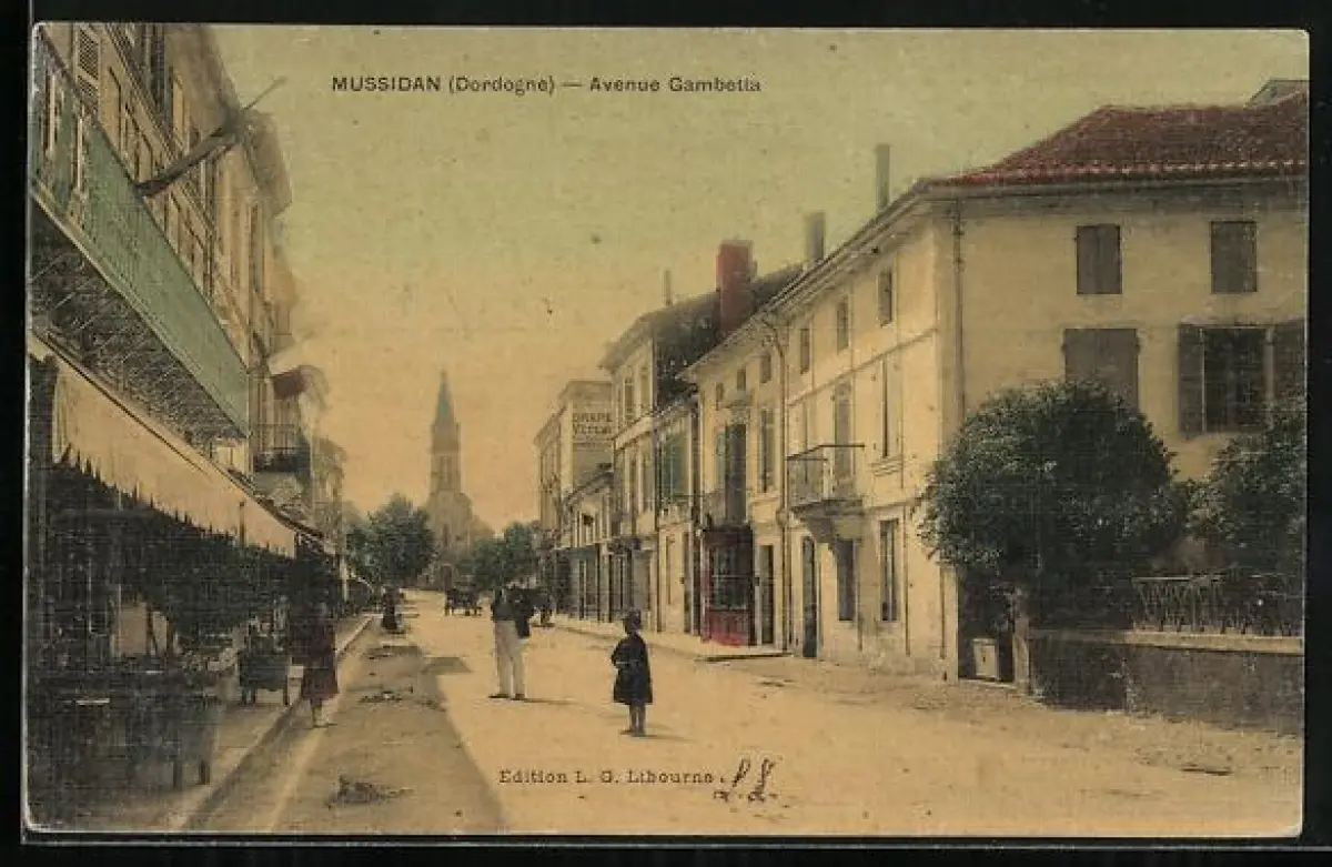 AK Mussidan /Dordogne, Avenue Gambetta avec vue sur l`église