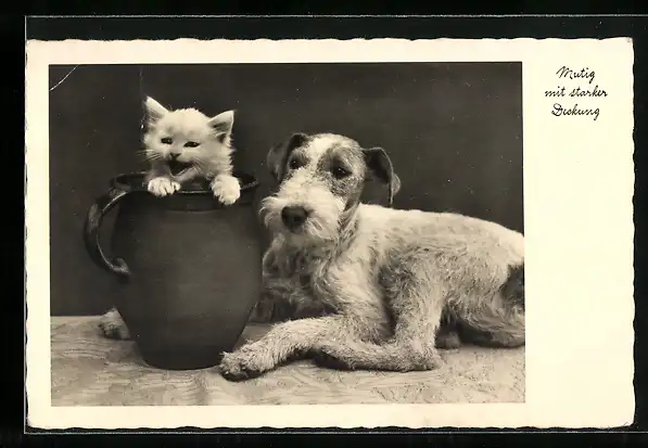 AK Mutig mit starker Deckung, Terrier und Kätzchen