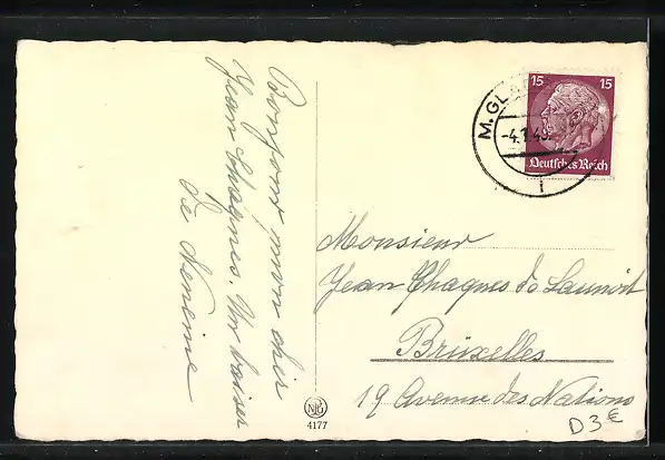 gelaufen 1949, Eckknick oben li., Bugspur oben li., guter Zustand