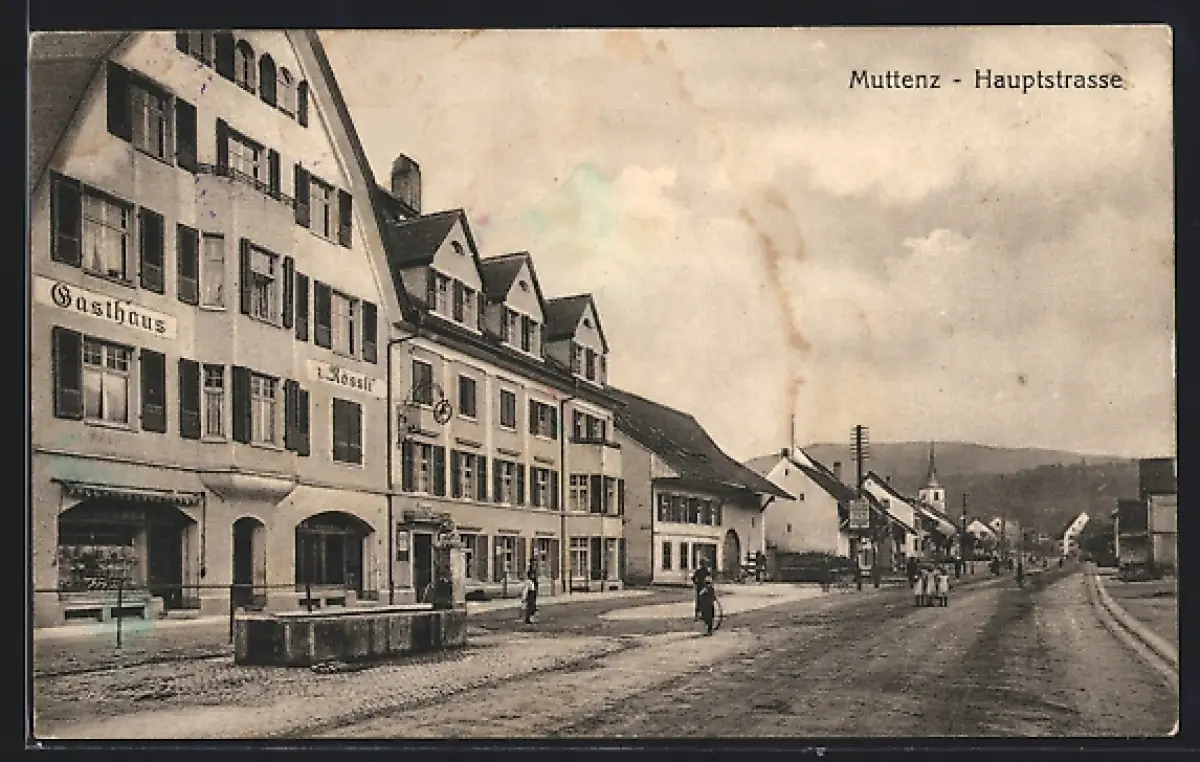 AK Muttenz, Hauptstrasse mit Gasthaus zum Rössli