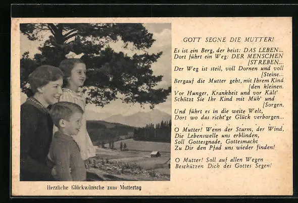 AK Mutter mit Kindern geniessen Ausblick, Muttertag