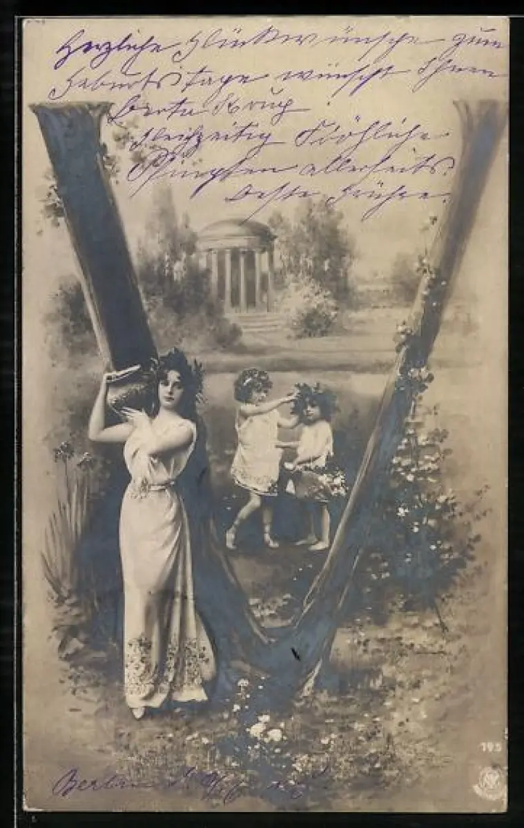 AK Mutter tanzt mit Töchtern um Buchstaben V