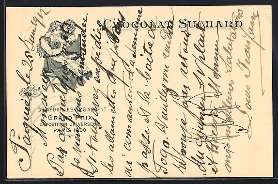 AK Mutter und Tochter mit einer Tafel Chocolat Suchard