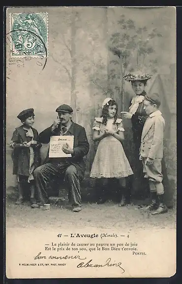 AK Mutter zeigt auf einen Blinden und seinen Sohn