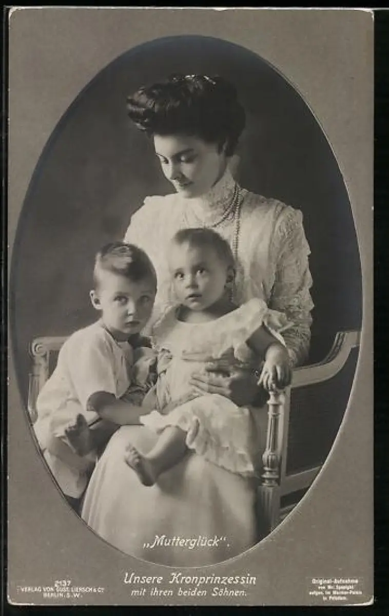 AK Mutterglück, Unsere Kronprinzessin mnit ihren beiden Söhnen, Kronprinzessin Cecilie