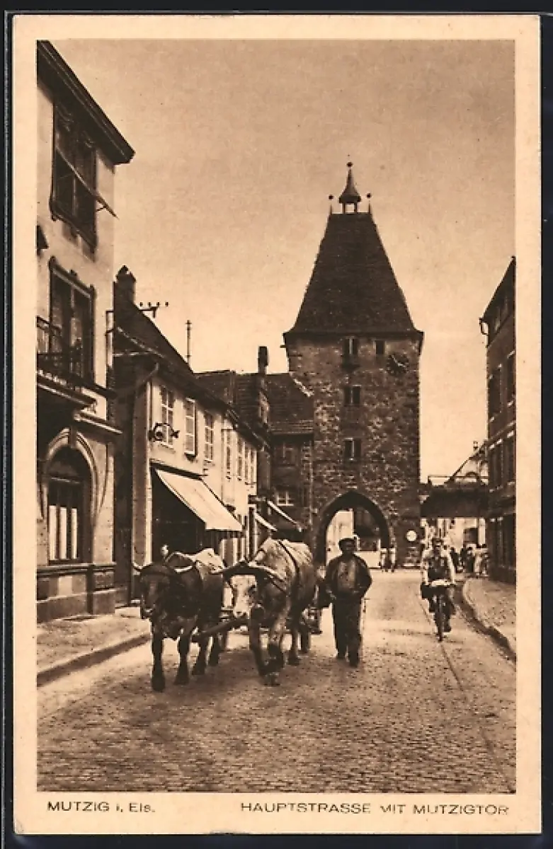 AK Mutzig i. Els., Hauptstrasse mit Mutzigtor