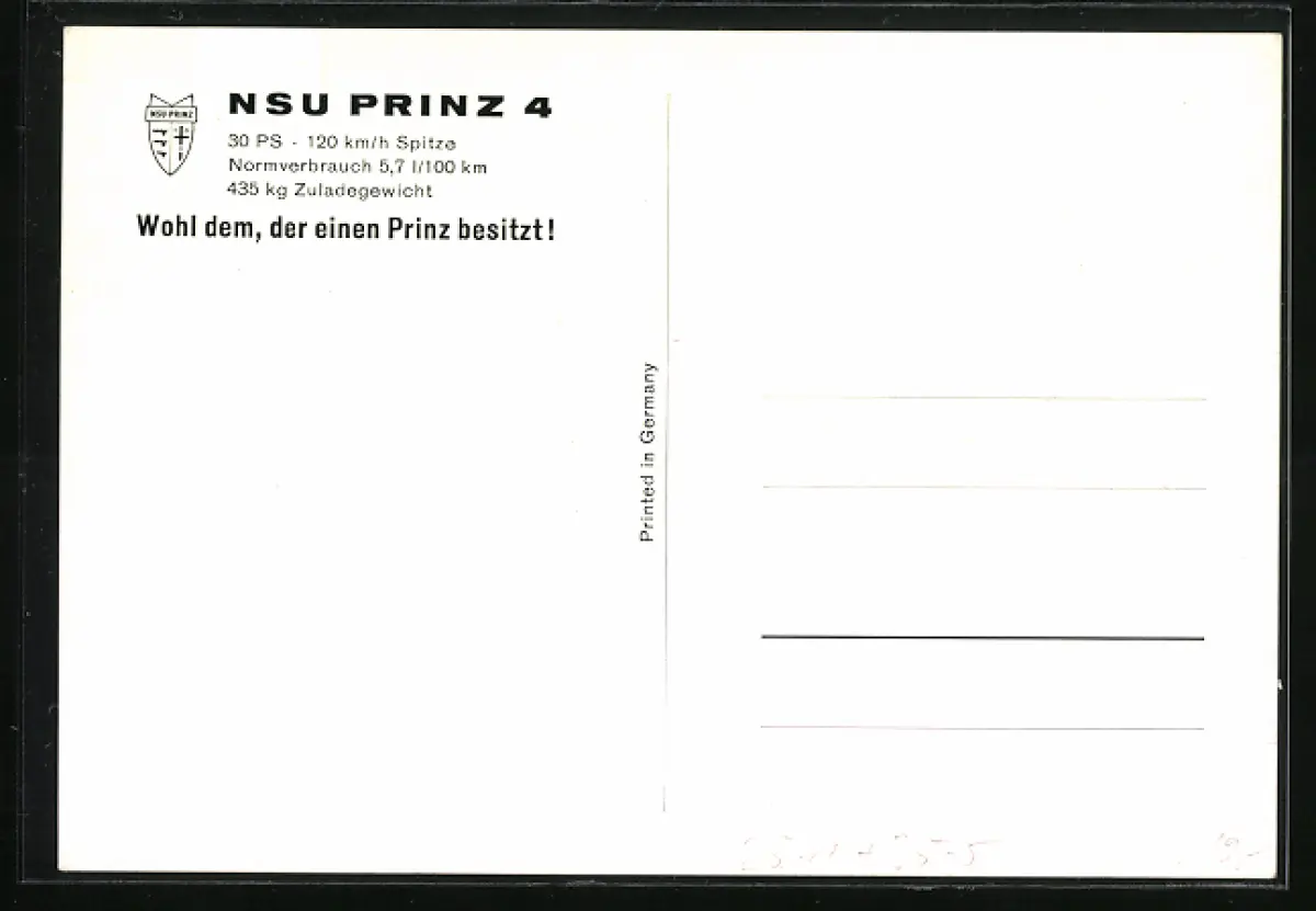 AK NSU-Prinz 4 geparkt am Seeufer, Auto-Reklame