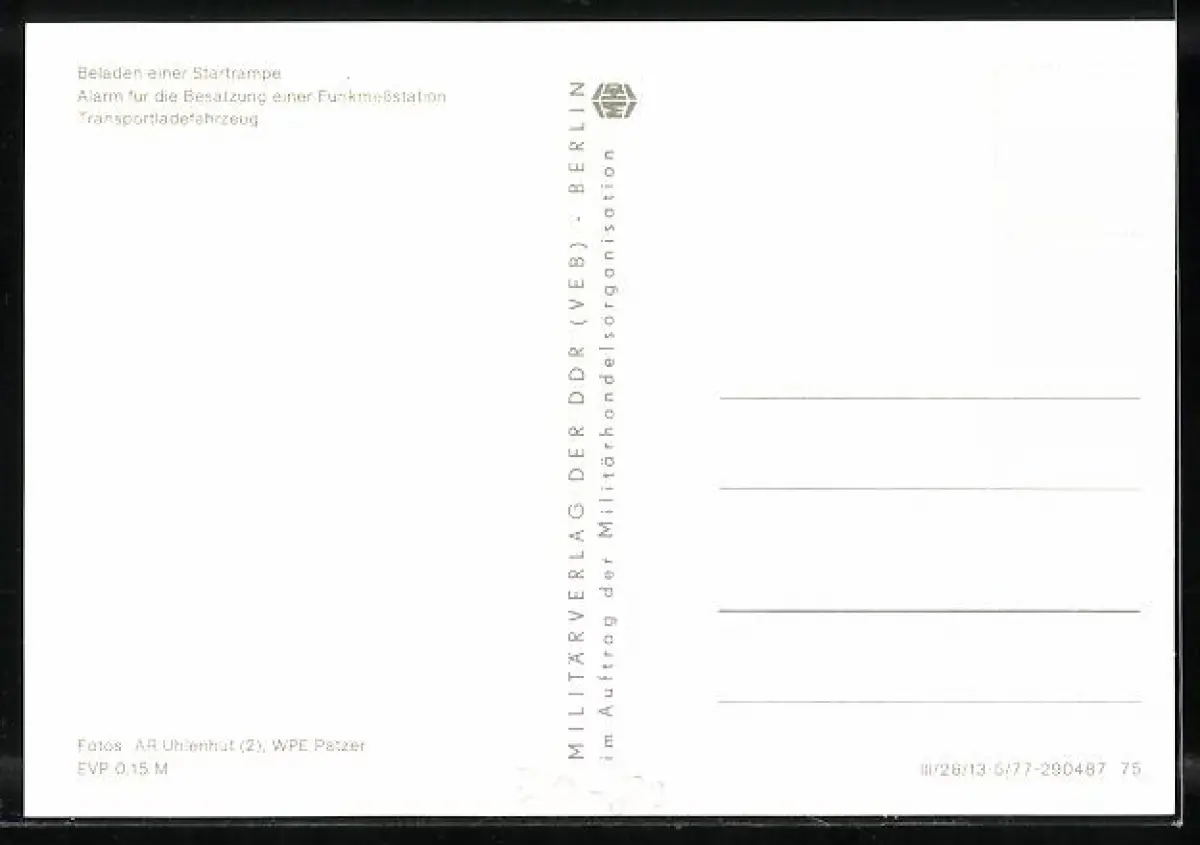 AK NVA Luftverteidigung, Transportladefahrzeug, Beladen einer Startrampe, Alarm für die Besatzung einer Funkmessstation