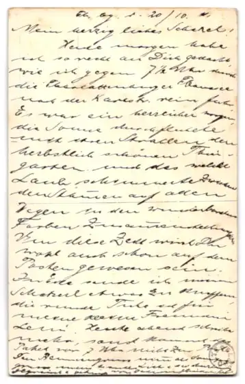 Personenbezogene Daten auf der Rückseite der Karte wurden durch blauen Textmarker unkenntlich gemacht. Die blauen Stellen sind auf die Vorderseite durchgeweicht und wirken sich negativ auf das Postkartenfoto aus