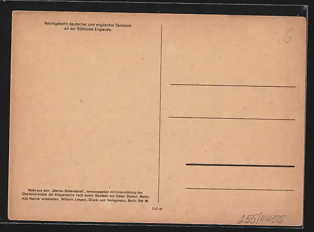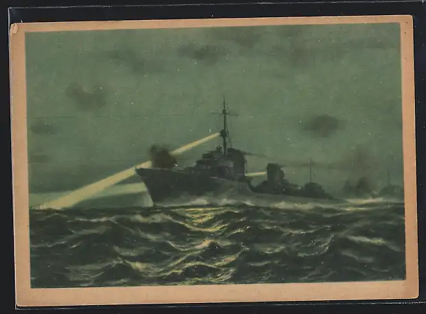 AK Nachtgefecht deutscher und engl. Zerstörer an der Südküste Englands