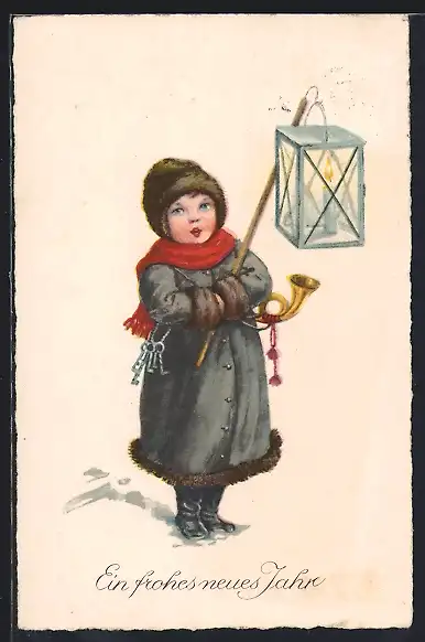 AK Nachtwächter mit Laterne und Horn, Neujahrsgruss