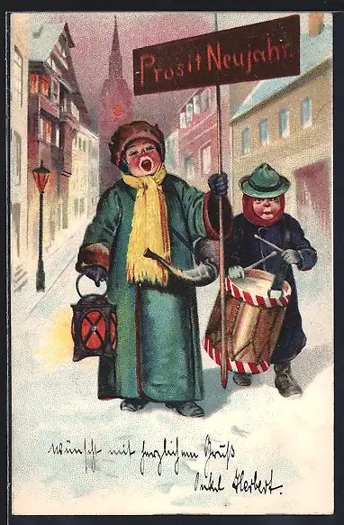 AK Nachtwächter ruft in den Strassen das neue Jahr aus, Trommler