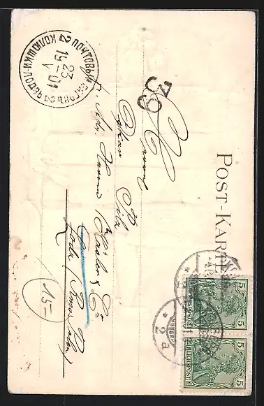 gelaufen 1901, Eckknicke li. unten und re. oben, Bugspur re. oben, guter Zustand