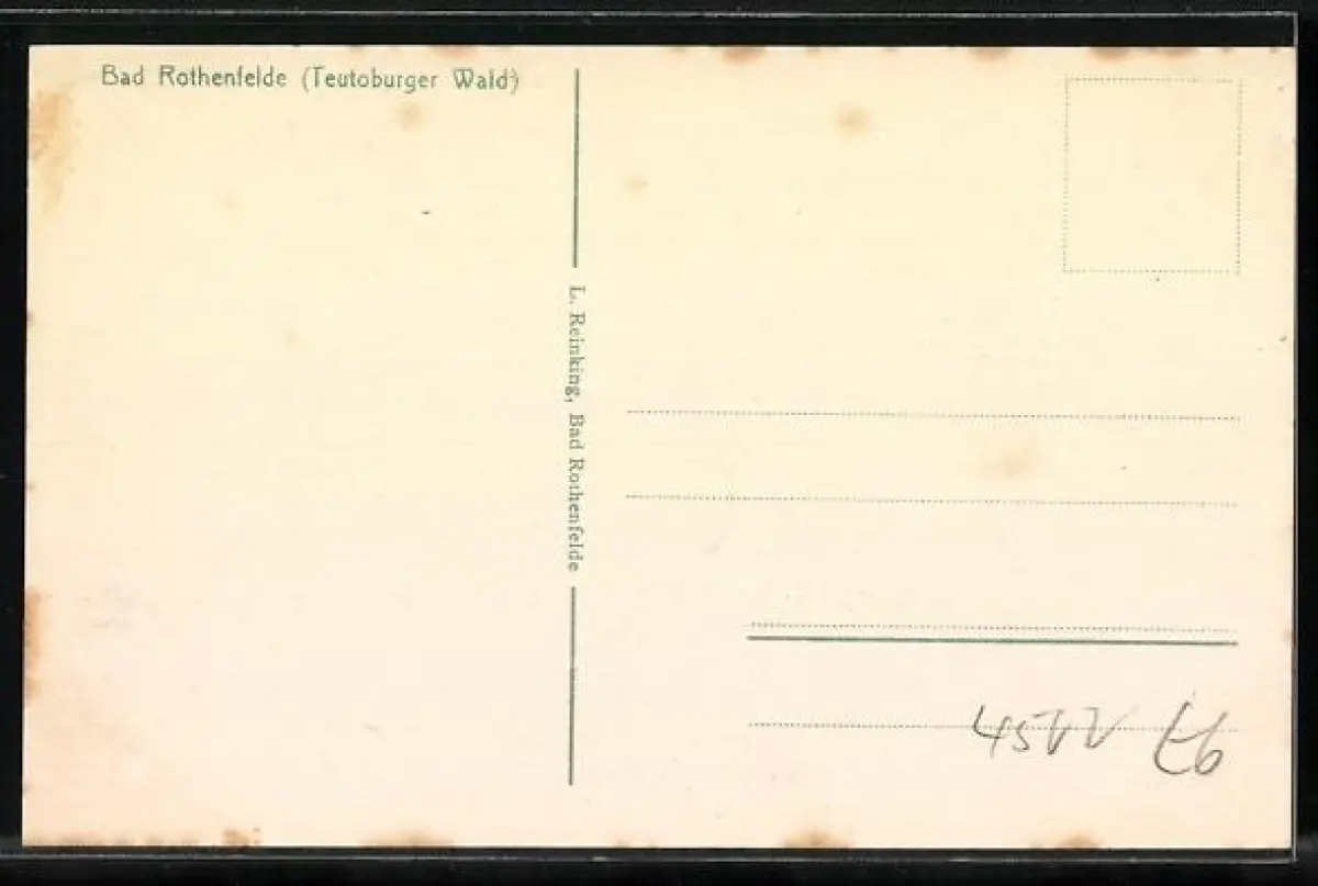 Personenbezogene Daten auf der Rückseite der Karte wurden durch blauen Textmarker unkenntlich gemacht. Die blauen Stellen sind auf die Vorderseite durchgeweicht und wirken sich negativ auf das Postkartenfoto aus