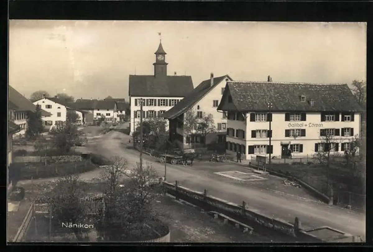 AK Nänikon, Ortspartie mit Gasthof zum Löwen