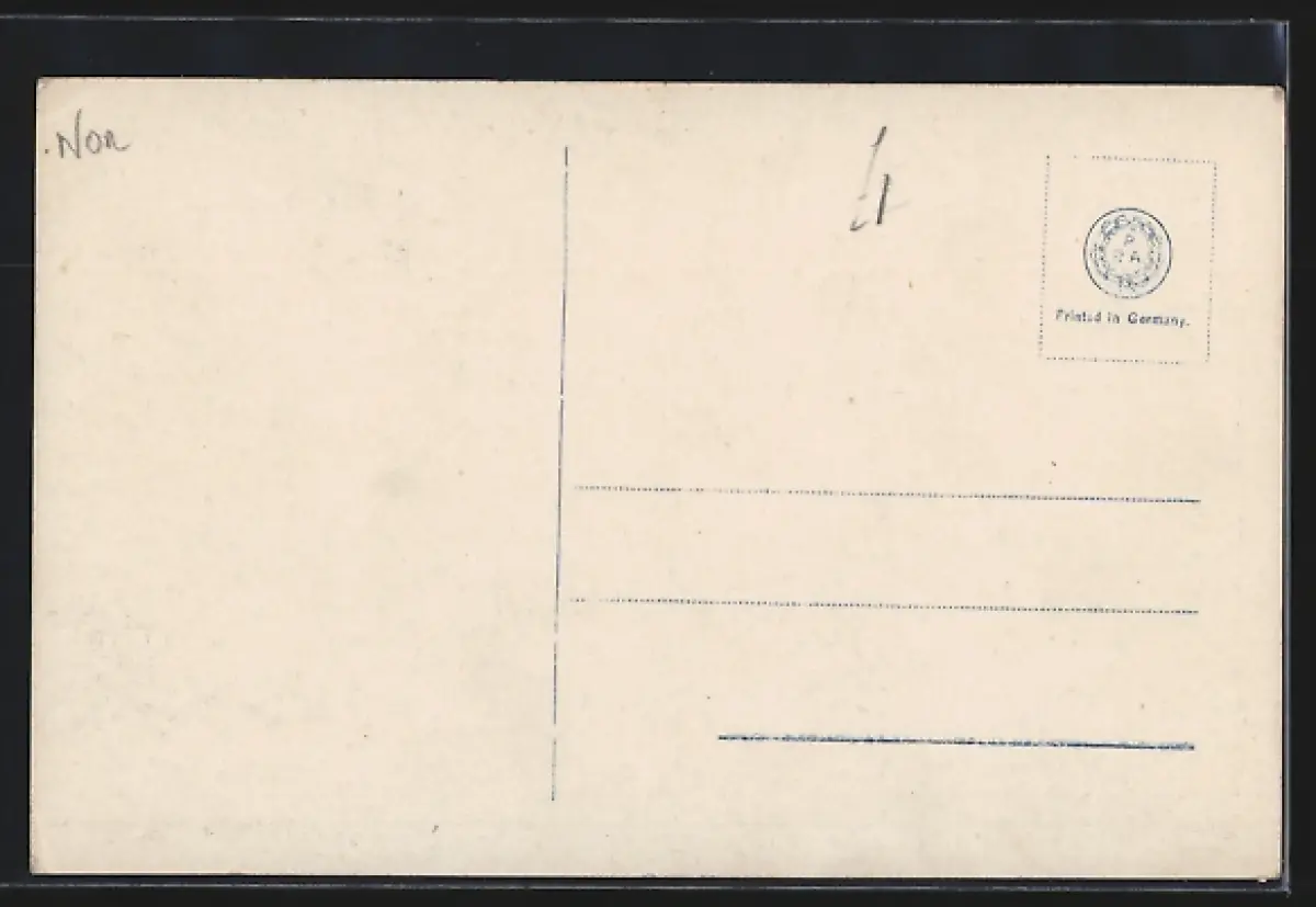 Personenbezogene Daten auf der Rückseite der Karte wurden durch blauen Textmarker unkenntlich gemacht. Die blauen Stellen sind auf die Vorderseite durchgeweicht und wirken sich negativ auf das Postkartenfoto aus