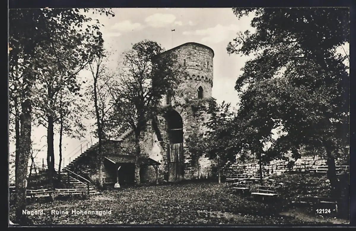 AK Nagold, Ruine Hohennagold, mit Treppenaufgang