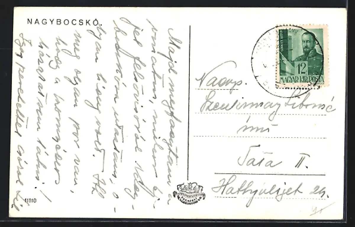 Personenbezogene Daten auf der Rückseite der Karte wurden durch blauen Textmarker unkenntlich gemacht. Die blauen Stellen sind auf die Vorderseite durchgeweicht und wirken sich negativ auf das Postkartenfoto aus