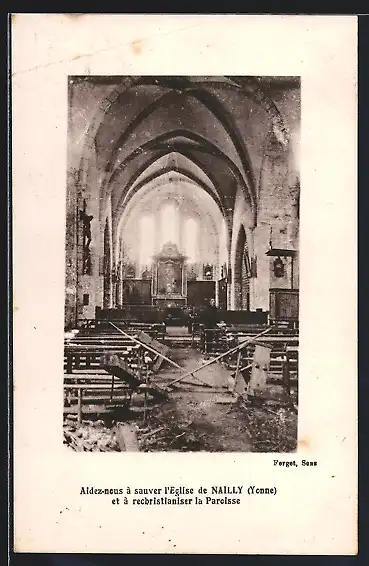 AK Nailly /Yonne, Intérieur de l`église avec appel à la restauration et rechristianisation de la paroisse