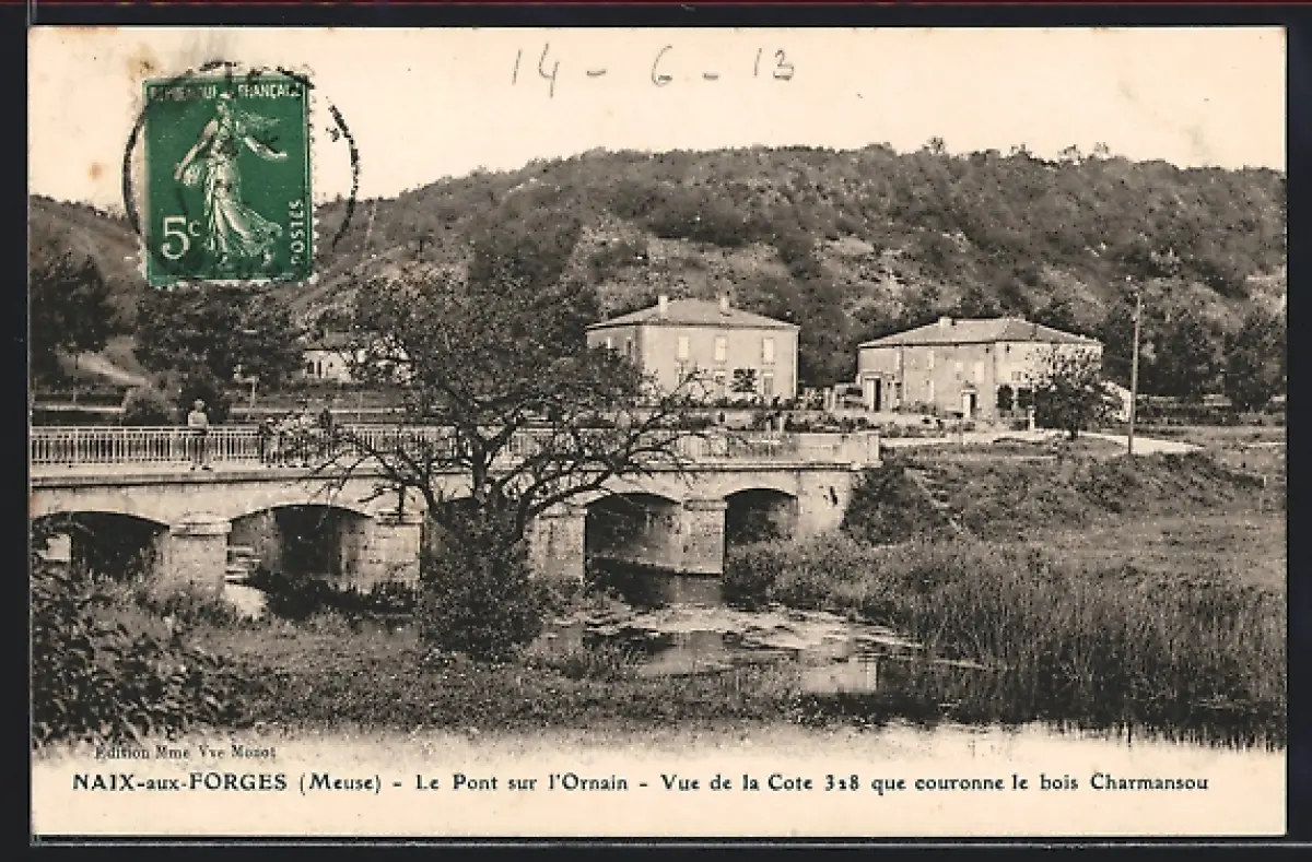 AK Naix-aux-Forges, Le Pont, vue de la Cote 328 que couronne le bois Charmansou