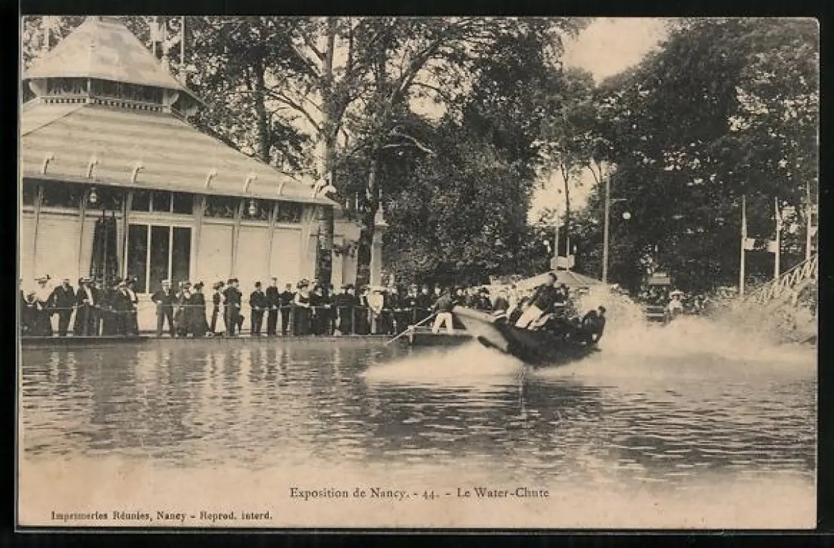 AK Nancy, Exposition, Le water-chute, Boot fährt die Wasserrutsche hinab