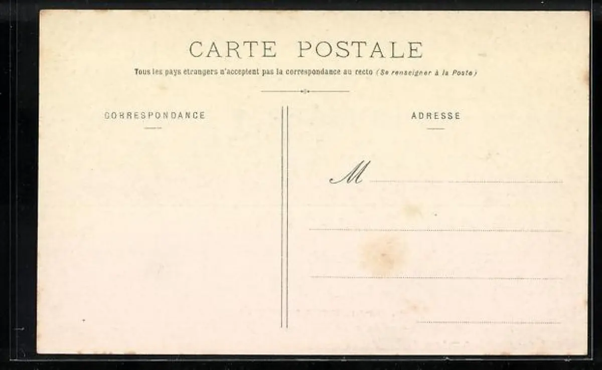 Personenbezogene Daten auf der Rückseite der Karte wurden durch blauen Textmarker unkenntlich gemacht. Die blauen Stellen sind auf die Vorderseite durchgeweicht und wirken sich negativ auf das Postkartenfoto aus