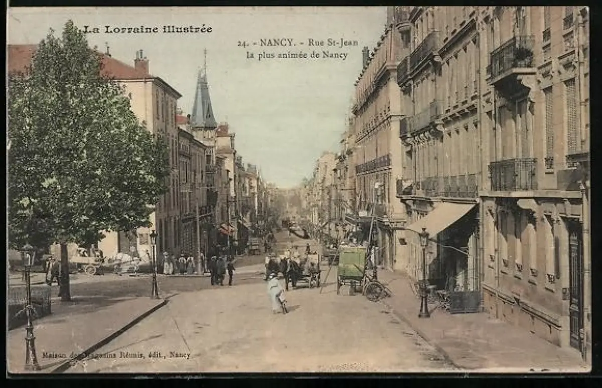 AK Nancy, Rue St-Jean, la plus animee, mit Passanten und Kutschen