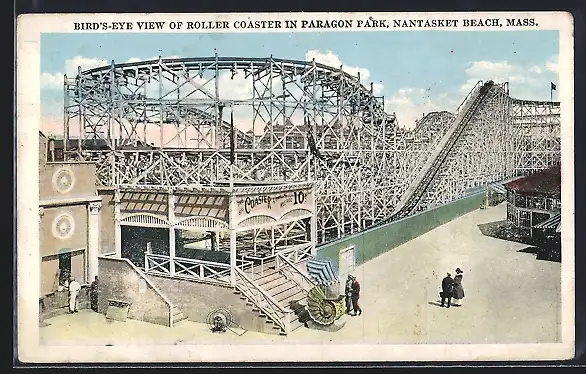 AK Nantasket Beach, MA, Bird`s Eye View of Roller Coaster in Paragon Park