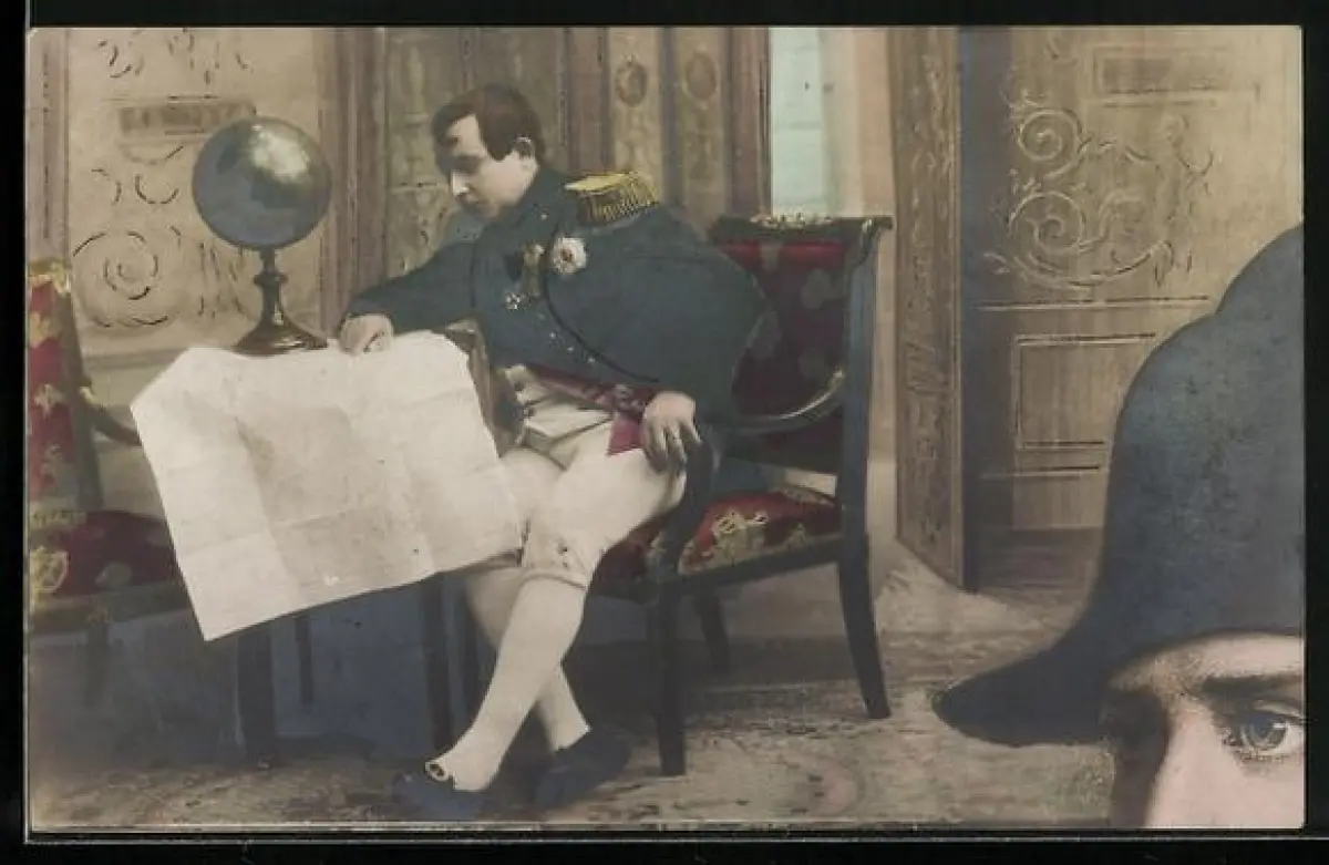 AK Napoleon sitzt mit einer Landkarte am Tisch