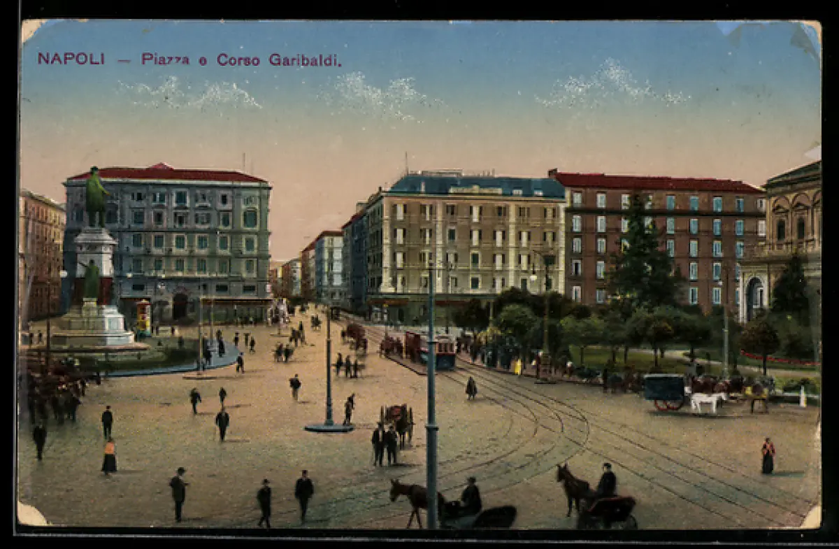 AK Napoli, Piazza e Corso Garibaldi, Strassenbahn